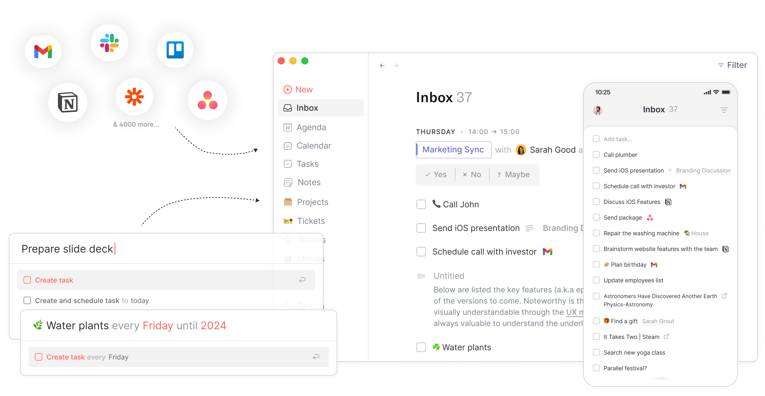 Mientras que Reflect se limita a crear notas conectadas, Routine ayuda a individuos y equipos a crear un gráfico de conocimiento vivo que conecta sus notas, tareas, proyectos, clientes, objetivos, calendarios y mucho más. Además, el enfoque personalizable y flexible de Routine le permite ampliar infinitamente los casos de uso mediante tipos y vistas personalizados. Por último, al conectar Routine a todos sus servicios favoritos, su gráfico de conocimiento se enriquece con datos que viven en servicios de terceros.
